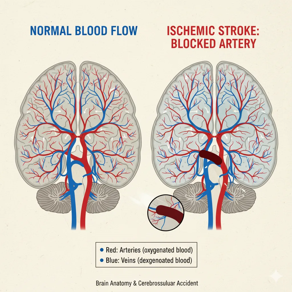 Ischemic Stroke: This is the most common type, accounting for about 80% of all strokes. It occurs when a blood clot or plaque buildup blocks or narrows an artery leading to the brain, cutting off the blood supply.