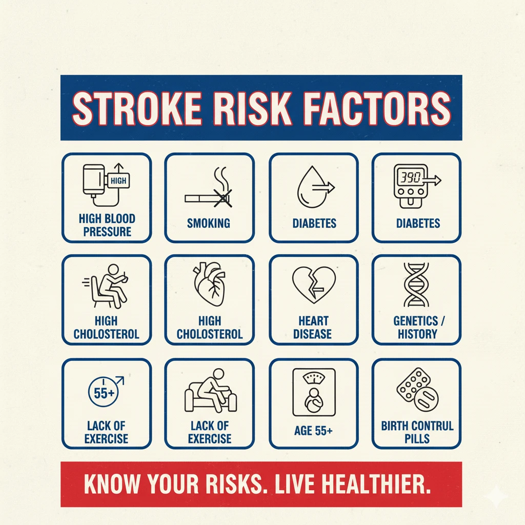 Diabetes: Elevates stroke risk, particularly in younger adults